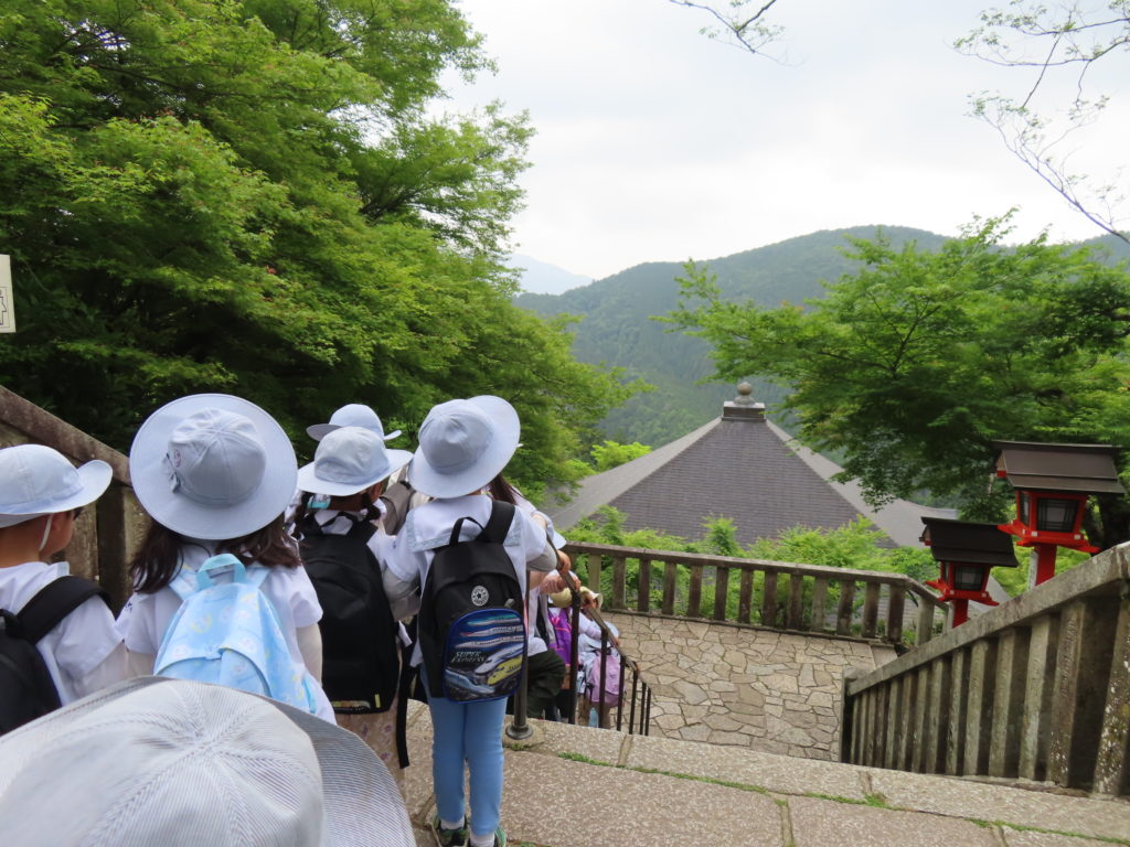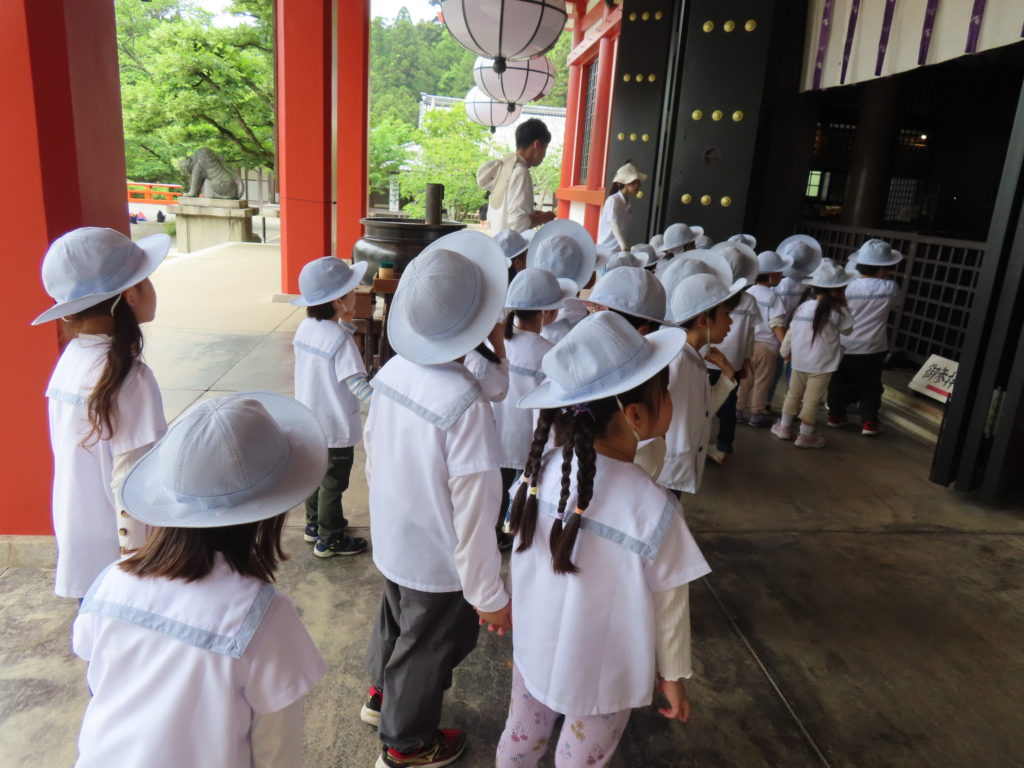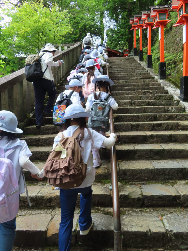 社会体験遠足🚃 2025年5月22日 ゆり組すみれ組の子どもたちが社会体験遠足へ出かけました 一生懸命本殿まで歩き、お参りをしたり、本殿からの景色を楽しんだり、 いっぱい歩いた後のみんなで食べるおにぎりは格別でした✨